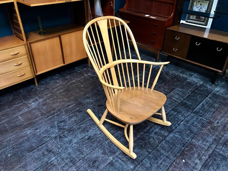 Vintage Mid Century Ercol Blonde Windsor Cowhorn Rocking