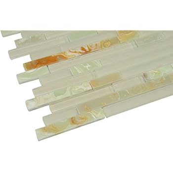 Glossy Cream And Green Onyx Random Brick Pattern Glass