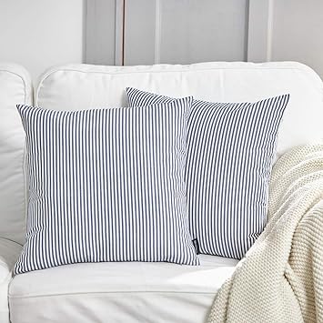 Nestinco Pack Of 2 Farmhouse Navy Blue And White Striped Linen Pillow Covers Decorative Throw Pillow Covers 18 X 18 Inches For Farmhouse Decor