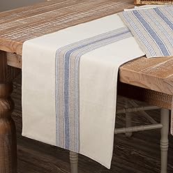 New Country Farmhouse Navy Blue Striped Grain Sack Table